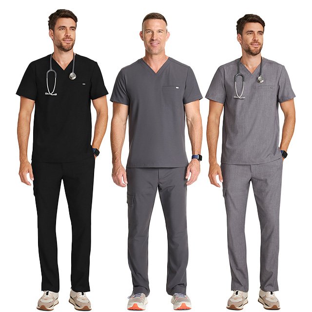 Best-Selling Hospital Scrub Vendors for Men’s V-Neck Stretch Scrub Sets with Utility Pockets