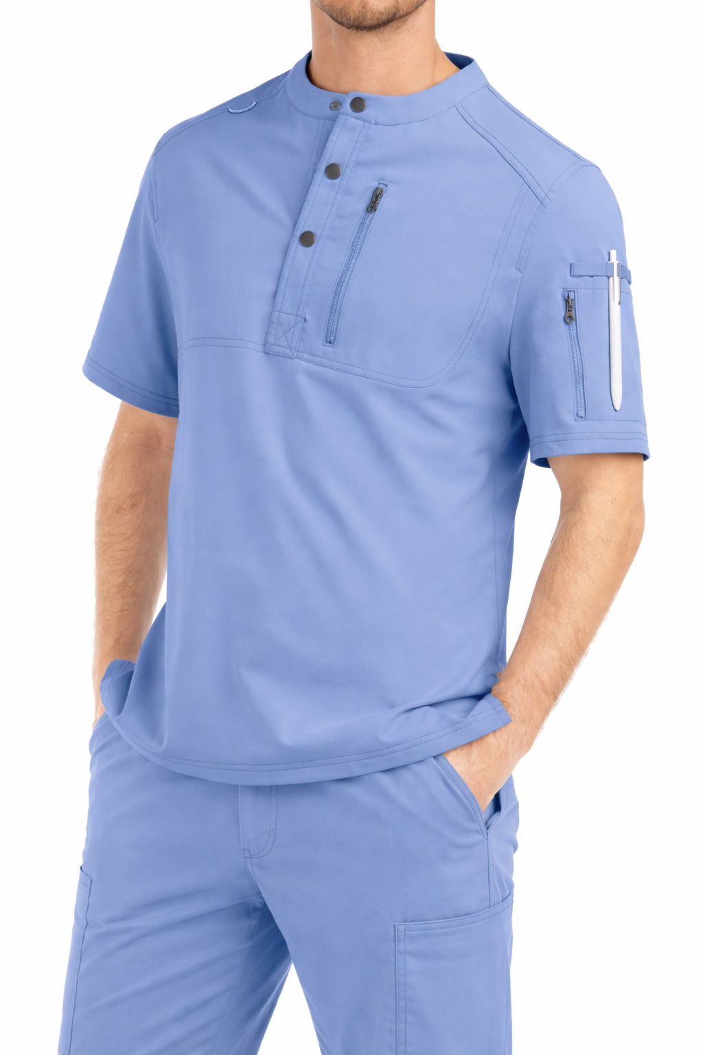 We are leading wholesale medical scrub vendors offering trending men’s V-neck scrub sets made with stretch fabric for enhanced comfort and flexibility. Designed for modern hospitals and healthcare environments, these uniforms provide a clean professional look with all-day wearability. Ideal for clinics, distributors, and uniform brands, we support bulk orders, custom logo embroidery, and private labeling services. Our export-quality production ensures durability, consistent sizing, and reliable global supply for growing medical apparel businesses.